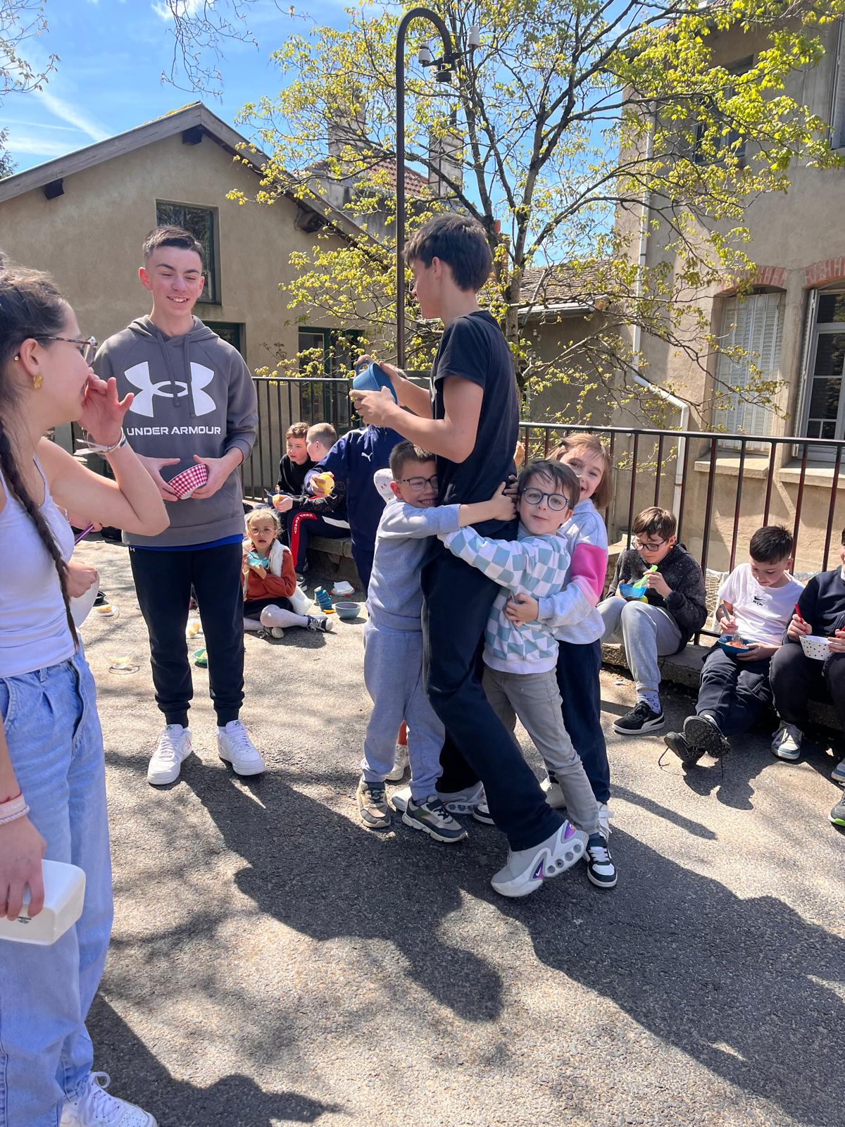 Tous les élèves de l’ensemble scolaire se retrouvent à l’église St Genest. Les 3e encadrent les enfants de maternelle…